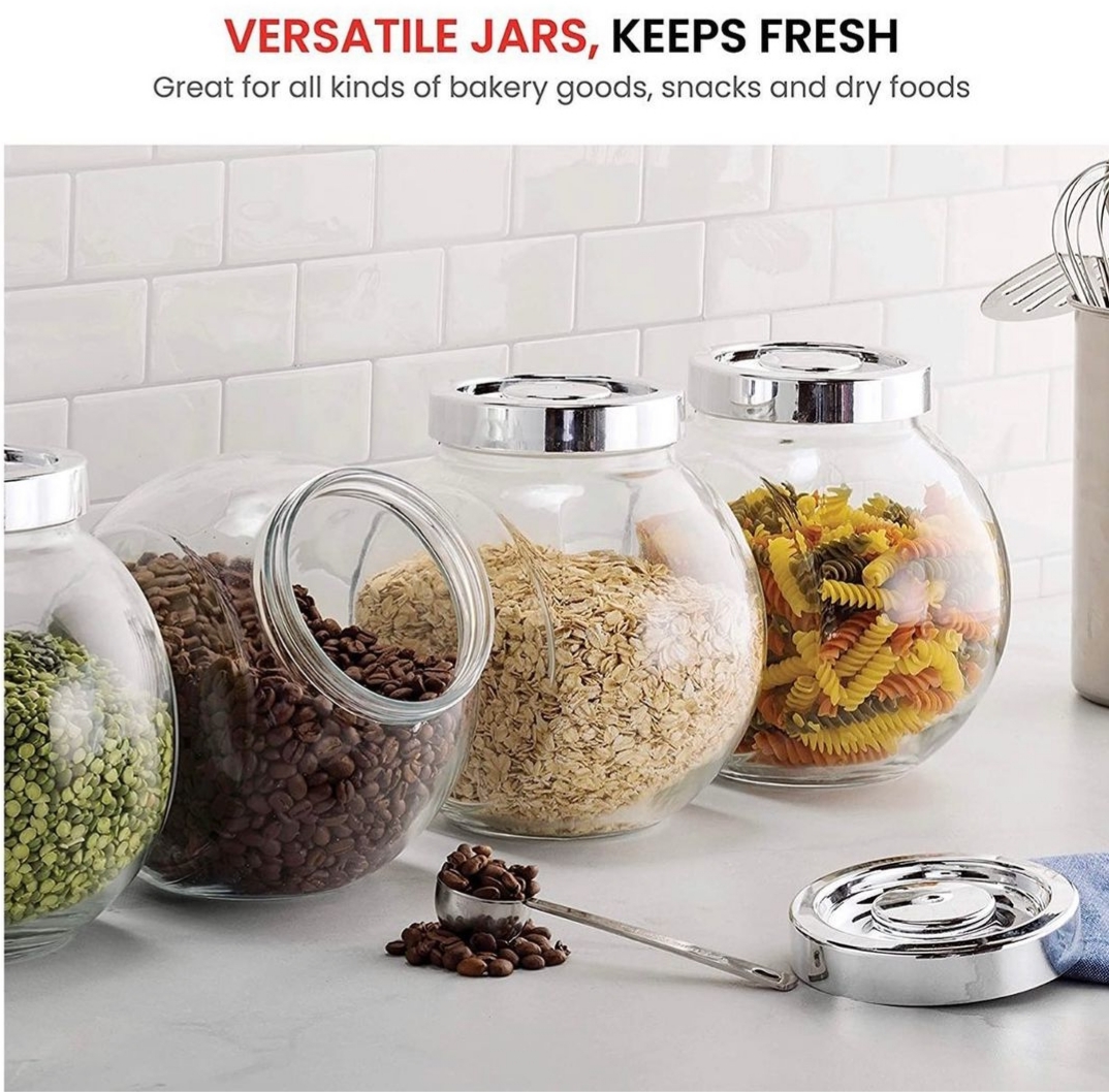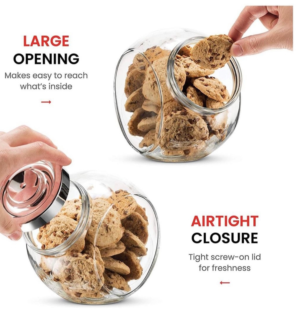 * Multi purpose Snack Jar – The perfect food storage container option for most food stuff such as cookies, candies, Pretzels, snacks, even coffee, beans, Flour, Sugar. Food will be kept fresh and mites free. Apothecary jar is also great for bathroom storage toiletries such as Q-tips, cotton balls and bath bombs, fasteners like screws, small toys, detergent, and buttons.