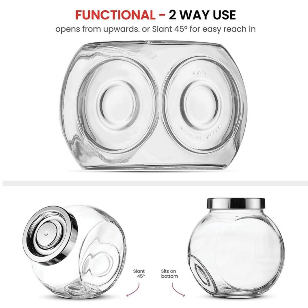 Revisit the candy store of your childhood (or your dreams) right in your home. Jar will be stable on its side for easy access to that delicious candy or stand upright and save space, as jars have straight walls. Store candies, cookies, and pretzels for easy snacking, or display at your party for a fun centerpiece, Use these canisters to finally get your home organized. Jars are perfect for small toys, raw ingredients, buttons, and fasteners. So much to do. Just one jar.