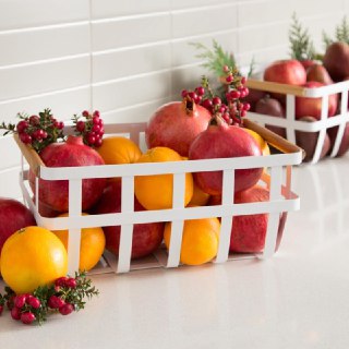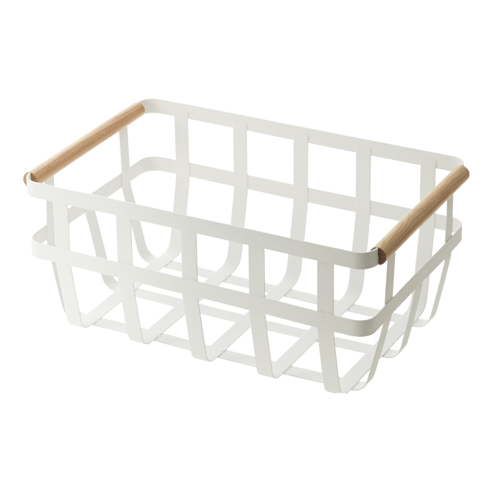 This charming basket with wooden handles is a beautiful addition that’s right at home in any kitchen, pantry, bathroom or any space. Its flat but textured wire design sits perfectly wherever it’s placed, and holds snacks, fruits, dry goods and pantry staples in style. The wood handles add a touch of sophistication and make it a breeze to pull off a shelf.